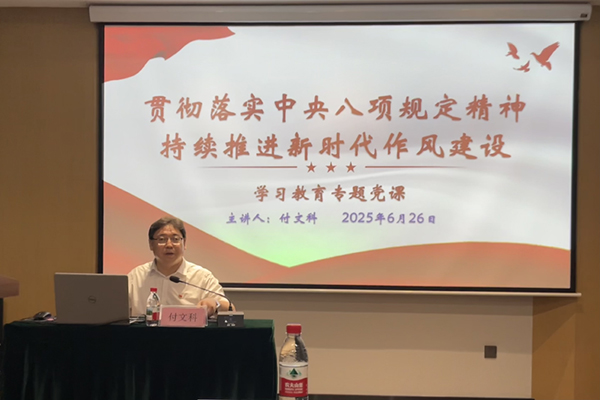 付文科同志到樸誠公司講授學(xué)習(xí)教育專題黨課